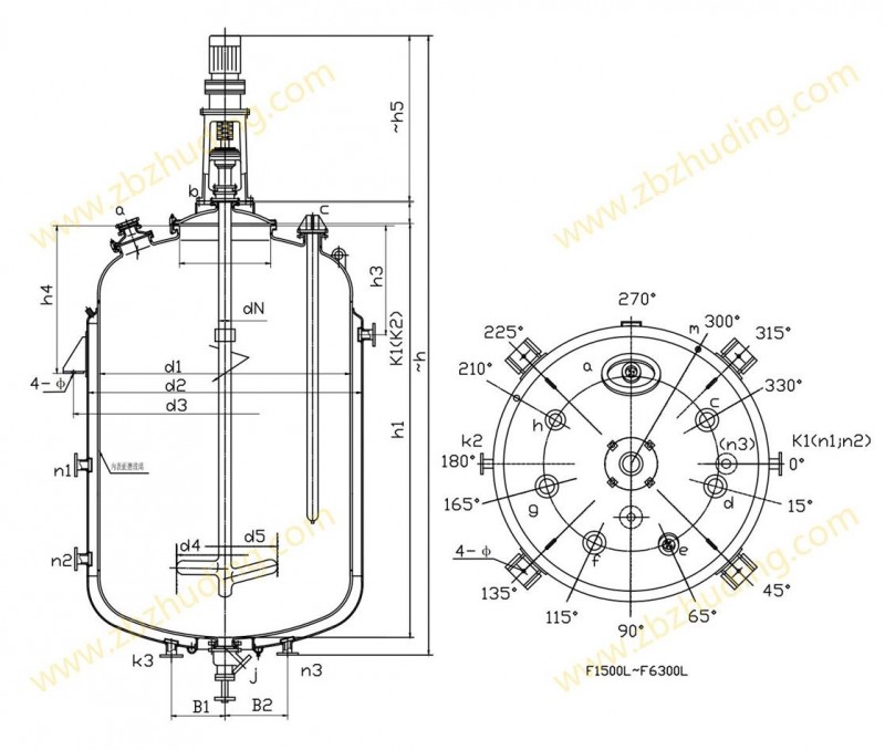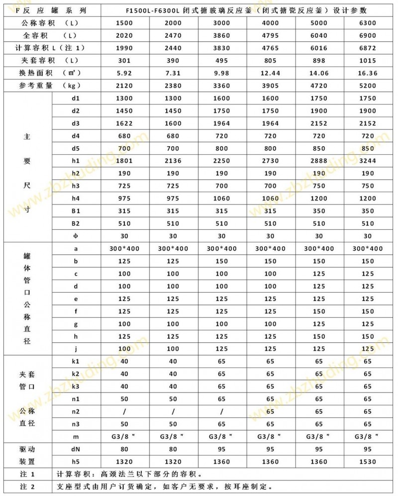 F1500L-F6300L閉式搪玻璃反應(yīng)釜(閉式搪瓷反應(yīng)釜)設(shè)計(jì)圖紙及參數(shù)如下所示: