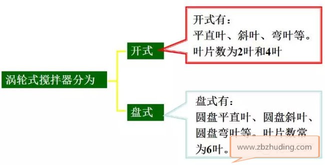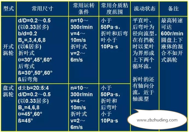 渦輪攪拌器速度較大,300~600r/min。直葉和彎葉渦輪攪拌器主要產(chǎn)生徑向流,折葉渦輪攪拌器主要產(chǎn)生軸向流。