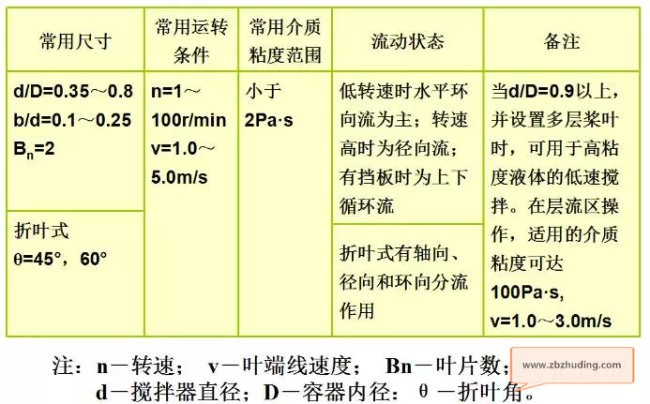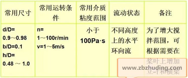 槳式攪拌器的轉速一般為20~100r/min ,其常用參數(shù)見下表: